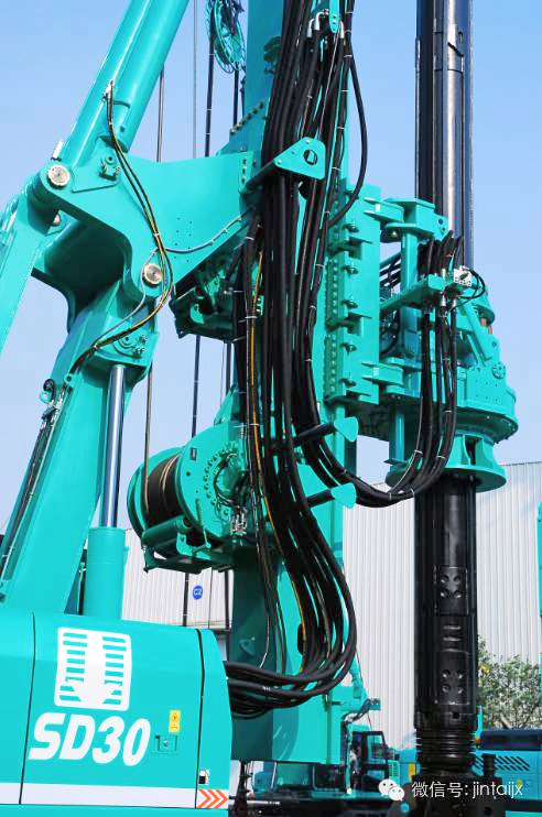 SD30是上海金泰公司四連桿機構旋挖鉆機經典機型SD28的升級產品。SD30在SD28的基礎上,對液壓系統進行再優化,以提升有效功率輸出效率;同時,通過增加下底盤重量、合理增減配重,使整機的加壓力和起拔力更趨平衡更加科學,以此增加鉆機的入巖能力。SD30具有如下技術特點: