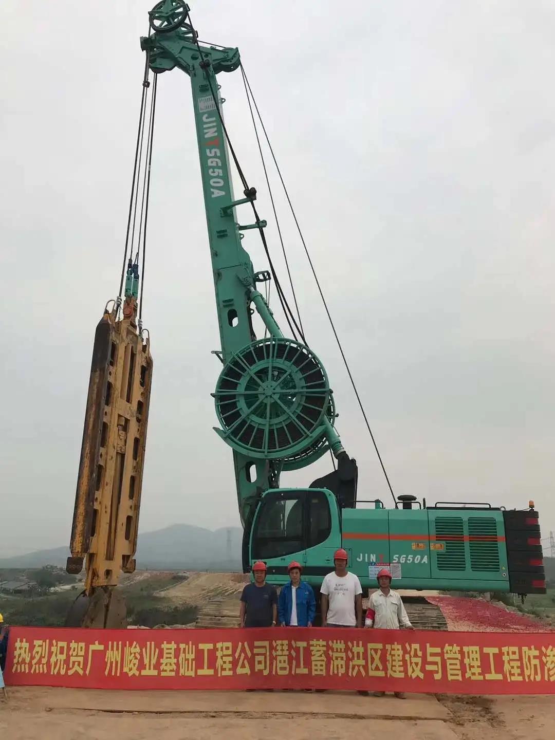 該工程(一標段)由廣東水電二局股份有限公司承建,廣州峻業基礎工程有限公司負責本標段防滲墻施工,選用金泰SG50A和SG46A液壓連續墻抓斗完成施工,工程總量約20137.2立方,防滲墻5204m,預計2020年9月上旬完成施工。主要任務是防御潖江洪水,在潖江蓄洪區啟用時圍內蓄滯洪水。主要施工內容:提升培厚、混凝提防滲墻、提頂道路、護坡、新建大廠北水閘、新建大廠南電排站、新建林塘圍水閘,新建林塘圍電排站。