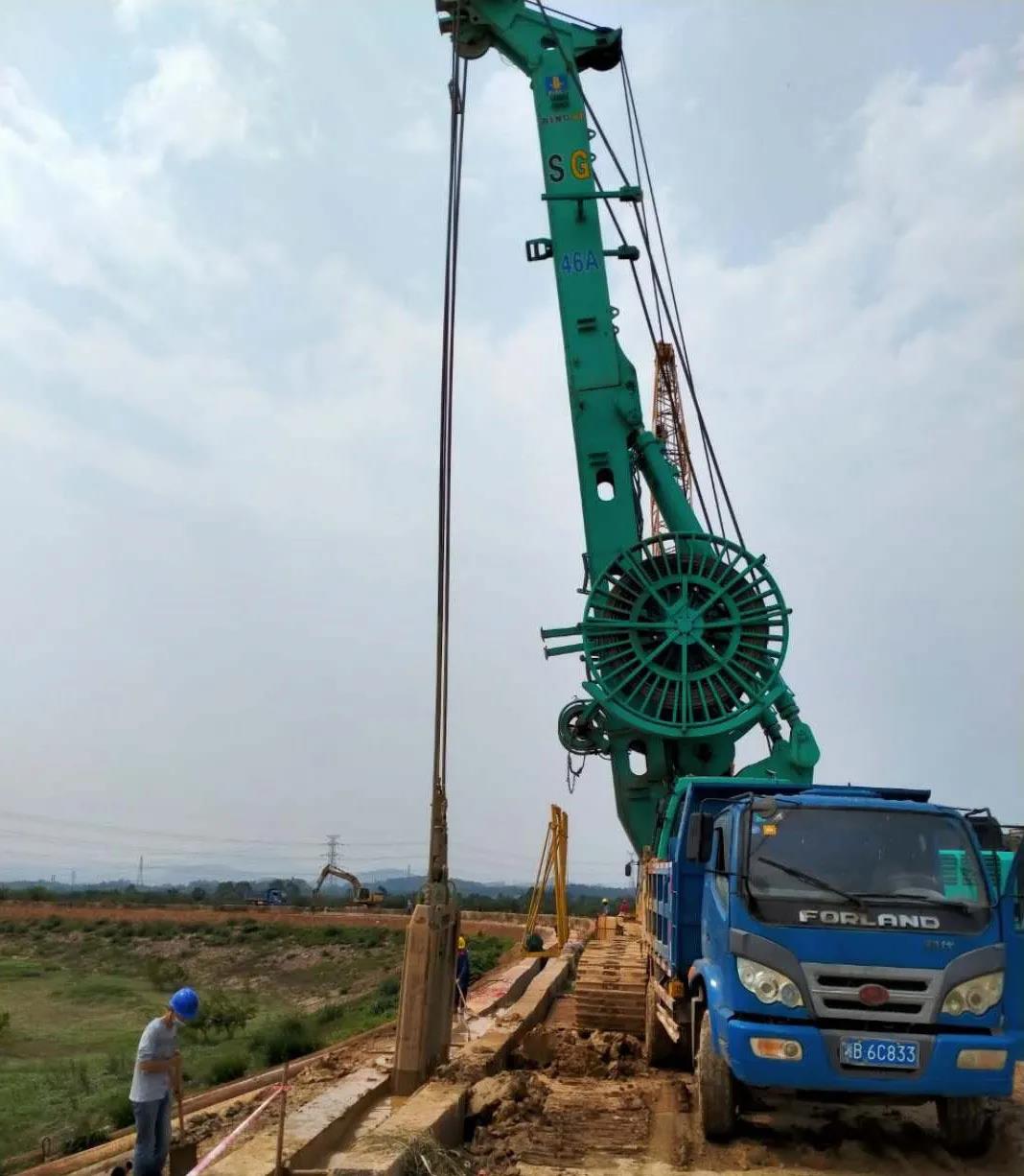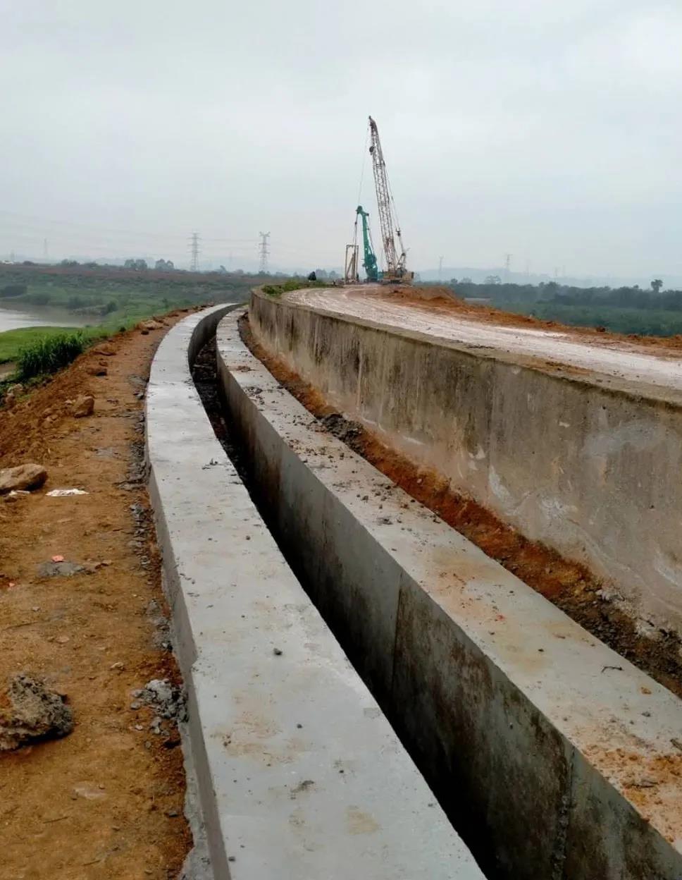 據廣州峻業公司王經理介紹,“本項目施工最大難點在于堤圍頂部寬度僅約5米難以滿足設備施工需求,同時標段施工現場內有3條高壓線及1條低壓線影響工程施工。
