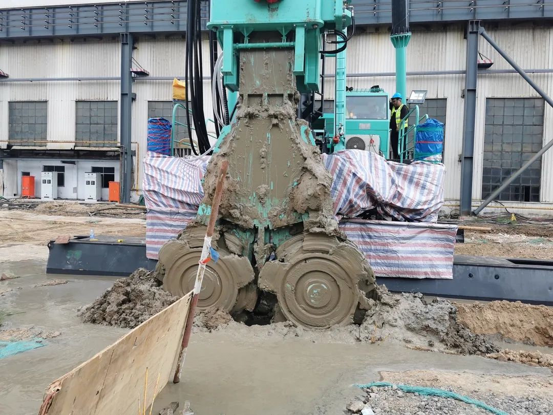 日前 ,被譽(yù)為“華北第一坑”的通裕重工股份有限公司鍛模車間基坑支護(hù)及地下水控制項(xiàng)目已進(jìn)入施工尾聲,該工程已在國慶假期間完成所有等厚水泥土攪拌墻施工,所用設(shè)備為金泰結(jié)合了液壓銑槽機(jī)設(shè)備技術(shù)和深層攪拌技術(shù)的SC55雙輪攪拌鉆機(jī)。
