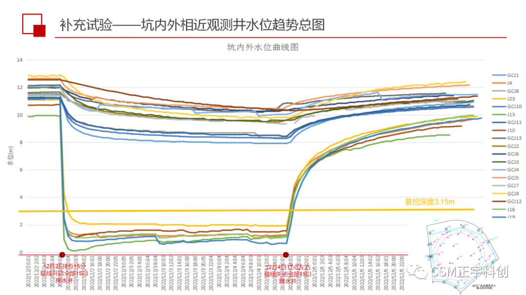 武漢市勘察設計有限公司編制的坑內外抽水連通試驗報告內容較全面,監測數據基本可信,經完善后可指導后續工作。