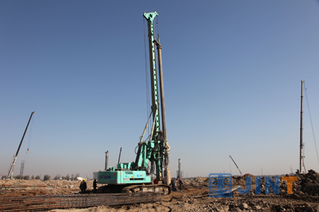 2010年10月4日,在上海金泰北京區域經理周定亮的引領下,記者一行來到了位于北京市昌平區回龍觀的北京地鐵8號線二期工程土建施工07合同段。北京地鐵8號線二期工程土建施工07合同段為平西府車輛基地,位于8號線線路北端終點,與二期工程線路終點站回龍觀東大街站接軌,平西府車輛段基地隨二期工程建成。整個工程于2010年5月開工,計劃于2012年底全部竣工并通車試運營。記者細數了一下,整個作業區總共匯集了6種品牌的旋挖鉆機,其中來自上海金泰的SD20A型旋挖鉆機表現格外搶眼。據周定亮介紹,要完成此工地的鉆孔任務,其他品牌旋挖鉆機的回轉扭矩都需要在200kNm以上,只有上海金泰的SD20A型旋挖鉆機在回轉扭矩僅為200kNm完成了鉆孔任務,而且成孔速度毫不遜色。