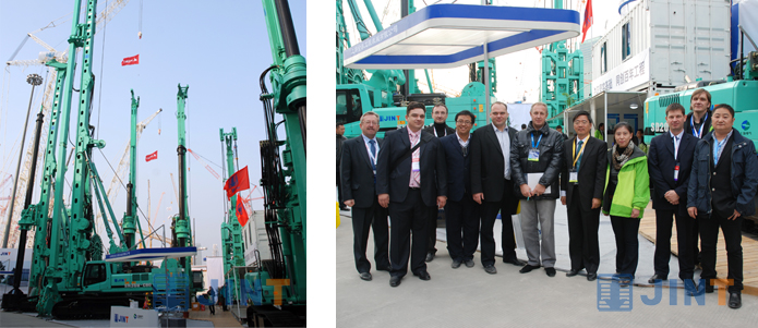 本屆展會,上海金泰展出的設(shè)備有:SH系列大三角結(jié)構(gòu)旋挖鉆機(jī),SD系列四連桿機(jī)構(gòu)旋挖鉆機(jī),開挖深度達(dá)到100米的SG60型地連墻抓斗,世界首創(chuàng)、鉆桿可伸縮、動力頭中置的M系列三軸鉆機(jī)以及使用CSM工法、適用于復(fù)雜地層C80液壓銑削攪拌機(jī)。 豐富多樣的產(chǎn)品吸引了100多位外商參觀金泰展位,他們分別來自俄羅斯、印度、巴西、土耳其、美國、澳大利亞、越南、埃及等國家。參觀過程中,世界領(lǐng)先的技術(shù)、完美的品質(zhì)及有競爭力的價格激起了外國客戶強(qiáng)烈的購買意向,甚至還有一些外國客戶有意向作金泰產(chǎn)品在本國的經(jīng)銷商。