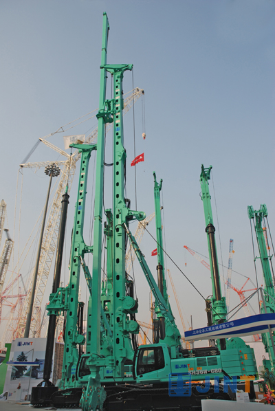 本屆展會我公司共展出SD20A、SD28、SH36、SG46、SG60、C80、ZKD85B、M-85等8臺,共六個系列的產品。作為一個專業的樁工機械生產商,我公司品種多、型號齊全,在樁工機械行業以精、專、強聞名,2009年獲得上海小巨人企業稱號。其中C80為國內首臺液壓銑削攪拌機,以SMW工法施工,工程造價低、成墻速度快、成墻質量好,而且擁有三軸鉆機無法比擬的優勢,它能對付一般中風化巖層,最大攪拌深度達35米,會展期間這“初來乍到”的家伙,以精湛的技藝、高挑的身材,俊朗的外貌引來了一批又一批的客戶圍觀,為我公司增添了不少彩頭。