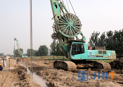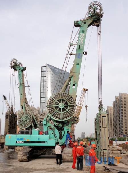 春夏時節中華民族先祖活動的重要地區的河南省鄭州市機器轟鳴,鑼鼓喧囂,隨著一臺臺連續墻液壓抓斗到場施工,“引黃灌溉龍湖調蓄工程”(以下簡稱“龍湖工程”)中的地下防滲墻工程已全面開展。鄭東新區——鄭州未來的商業文化住宅中心,迎來了前所未有的發展良機,作為鄭汴一體化的重要環節,整個中原地區均將目光匯聚于此,該工程竣工后,將與現在2000多畝的國家森林公園共同構成新的城市核心生態區。目前已有上海金泰工程機械有限公司多種規格包括SG22、SG35A、SG40A、SG46連續墻液壓抓斗28臺參與“龍湖工程”施工,整個防滲墻項目一半以上的工程均采用了金泰液壓抓斗,并得到了施工單位和甲方的一致認可。