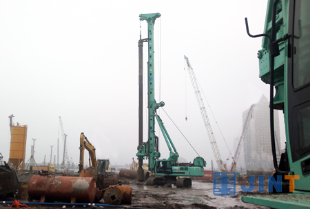 據負責現場施工的企業負責人介紹,該項目去年年底開工初期,先后有國內外十余家廠商、數十臺旋挖設備陸續進場試樁,后或因設備型號不匹配或綜合效率無法滿足施工要求,相繼悵然離場。上海金泰的主流旋挖“力挫群雄顯身手,大浪淘沙始到金”,以其施工效率、入巖能力和性能穩定等優勢,令同行設備望塵莫及、“望金興嘆”,目前,在現場的三臺SH30和一臺SD28自開工以來以每臺每日兩樁的效率打下近900根樁徑800mm-1200mm、樁深40m的樁孔。