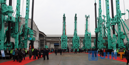 展示會集中展示了上海金泰近年來研發和生產的適合各種復雜地質條件施工的樁工機械產品30余臺(套),其中SX30輕型雙輪銑、SE30旋挖鉆機、SD20C多功能鉆機、超深液壓擠壓鉆具、液壓擠擴鉆具、導桿式抓斗等新產品和鉆具首次對外公開亮相。在展示現場,參會代表對金泰各系列產品表現出濃厚的興趣,或駐足觀摩機械師的操作演示,或詳細了解技術人員對產品性能和各技術參數的介紹,或三五成群與公司營銷人員一起討論經銷合作細節……