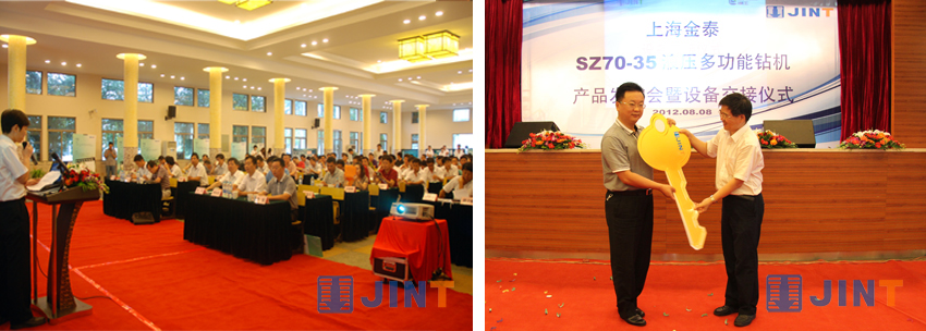 8月8日上午,來自工程機械行業的專家、媒體記者和上海金泰的標桿客戶共同見證了首臺“SZ70-35液壓多功能鉆機”成功下線,與此同時產品新聞發布會和首臺設備客戶交接儀式在金泰廠區內隆重舉行。
