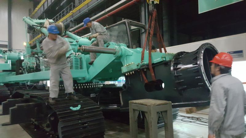 公司裝配車間液壓班組負責產品液壓裝配、調試以及新產品廠內試驗等工作,為確保展會產品質量過關,兩位年輕的車間主任楊東森、陳智奇帶著一群20出頭的熱血青年吃在一線,干在一線,遇到特殊緊急任務,經常工作至深夜。年輕的小伙子們以過硬的技術和認真的態(tài)度為設備地順利運行提供可靠技術保障。眼望一臺臺新產品駛出裝配車間大門,一張張洋溢笑容的臉上露出潔白的牙齒,這是一支青春、樂觀,不怕苦、不怕臟、不怕累的隊伍。公司生產系統分管領導、總經理助理葉欣每天緊盯現場,奔走在各車間班組,抓進度,催交貨,始終與生產系統的干部和員工干在一起。(最大型號旋挖鉆機SH46發(fā)車)