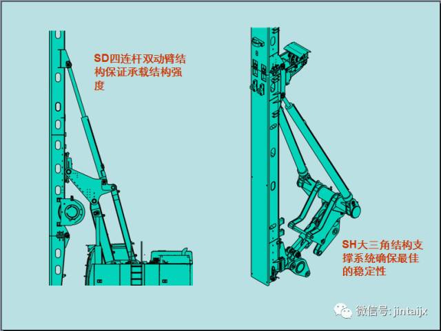 7)在原有SD32基礎上,對四連桿結構及油缸液壓系統的設計進行了全面升級,油缸起塔能力大幅度提升;