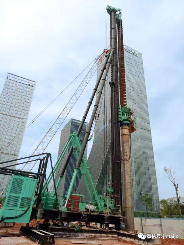日前,一臺上海金泰SZ80-35全套管鉆機現身由中建三局承建的深圳工商銀行大廈樁基工程現場,這臺全新的SZ8-35全套管鉆機開始首次嘗試以“咬合樁”工藝進行基坑圍護施工。
