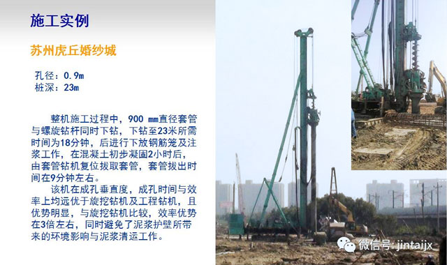 早在去年6月“上海沿江通道越江隧道項目”中,承建單位采用上海金泰SZ80-35全套管鉆機進行抗拔樁施工,成功實現了軟土地質條件下無泥漿施工,并順利通過了上海建工集團、上海隧道股份有限公司、上海市基礎工程集團等部門評審和驗收,為在江浙滬等地區的灌注樁實現無泥漿化施工提供了一種新的可能。此次成功實現咬合樁施工,又將進一步拓展SZ80-35的應用領域。