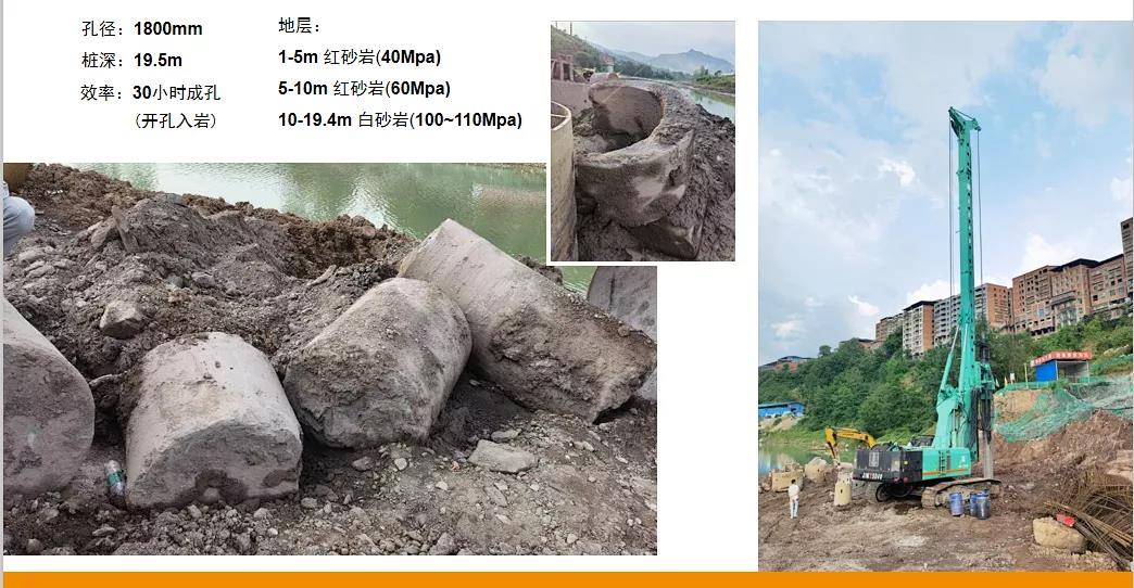 SD40最大鉆孔深度102m,最大鉆孔直徑ф3m,動(dòng)力頭最大輸出扭矩400KN·m,今年上半年在四川宣漢南壩龍駒壩大橋工程輕松入巖110Mpa白砂巖而備受矚目,如此強(qiáng)悍且經(jīng)濟(jì)耐用的四連桿機(jī)型不知它能“撩”到你嗎?
