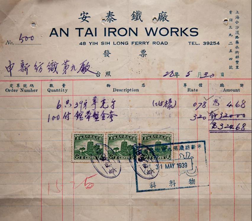 (30年代安泰鐵廠銷售發票)