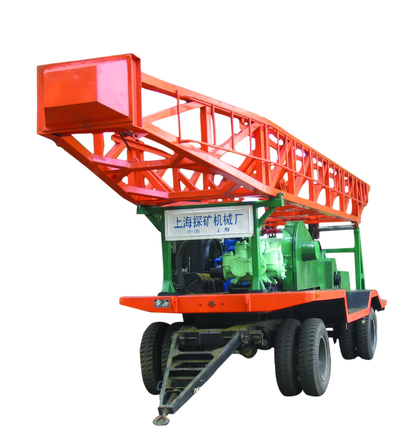 > 鉆機底盤為拖車型式,方便用普通的牽引車來牽引。